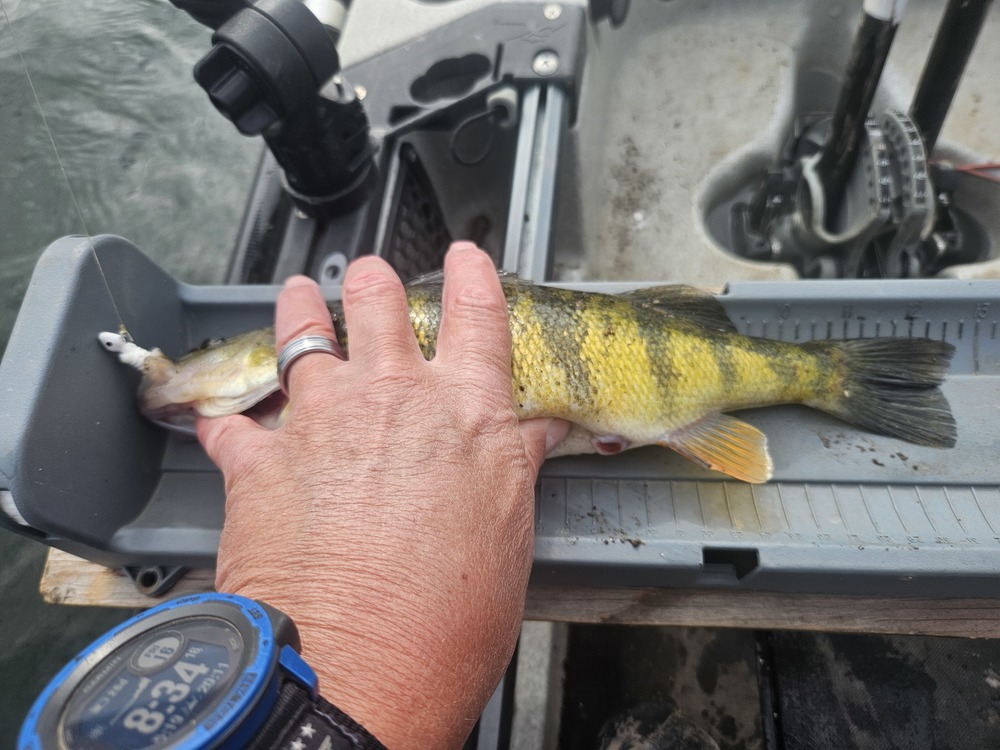 My PB yellow perch, a 165 point fish that won't be good enough to make my ten this year. |